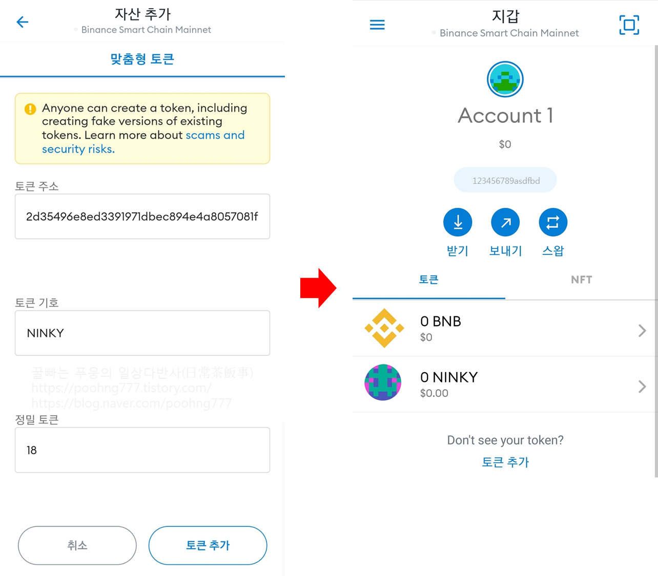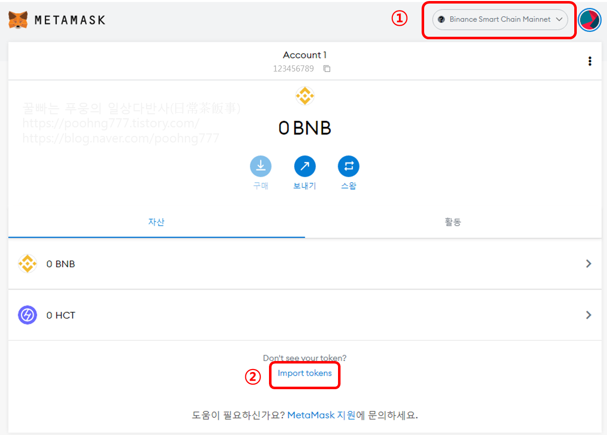 메타마스크에 Binance Smart Chain Mainnet을 추가하는 방법은 아래 블로그를 참고해주세요.